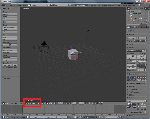 次は削除.削除するにはオブジェクトを選択して,Xキーを押します.出たメニューのなかのDeleteを選択.それで削除できます.