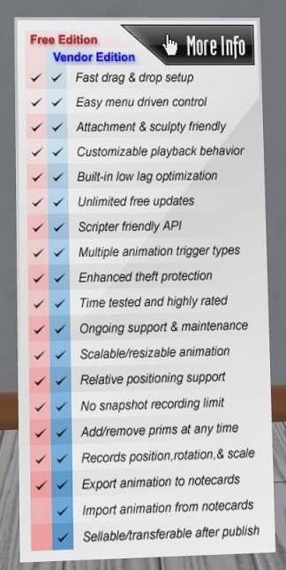 これは『Prim Puppeteer(以下,PP)』というもので,画像はフリー版,2000L$の有料版もあります.無料と有料版の違いは最後に説明しますね.こちらの商品SL内でも入手できますがMarket Placeでも入手できます.さて,これ何ができるかといいますと,記事のタイトル通りなのですがScriptを自分で組まないでもAnimationを作れるのです.内部に英語のマニュアルや,操作途中で英語のガイダンスが流れるのだけれど,簡単に使い方を説明しますね.まずはSetup方法から,