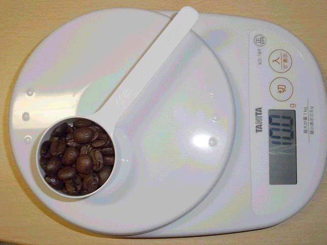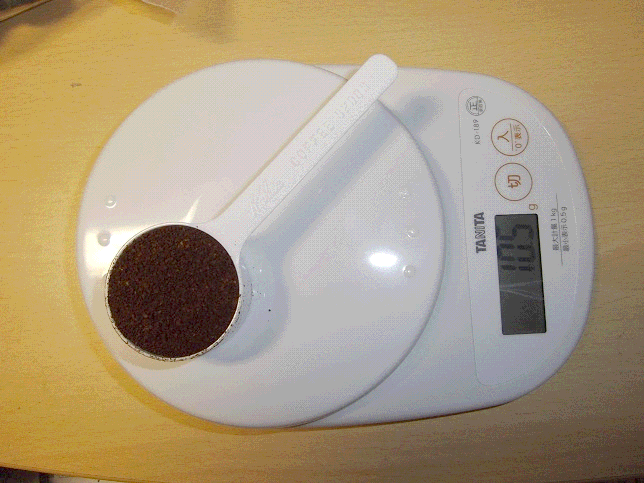 先日,Coffeeショップに行った際,Kalitaの計量スプーンを買いました.値段は40円くらいだったかな,正確には覚えてないけど.計量スプーンは1杯10gらしい.あれ?豆の状態で,それとも挽いた状態で10gなんだろうか?購入した際に確認すればよかった・・・気になったのでamazonでTANITAのデジタルクッキングスケールを購入.最小0.5g刻みで量れる凄い奴です.ん~これ,今回の計測後使用することがあるのだろうか・・・嫌な想像が頭をよぎりましたが,まあそれは置いといて,計測.
