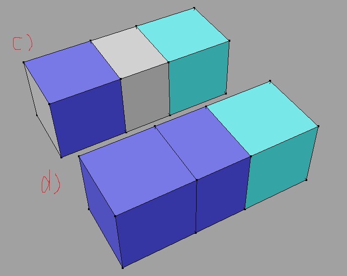 d)も同様にテクスチャを2種類貼ってるんですけど、全ての面にテクスチャが貼られている