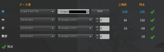 中、低、最低での頂点数を調整してやると大丈夫です。